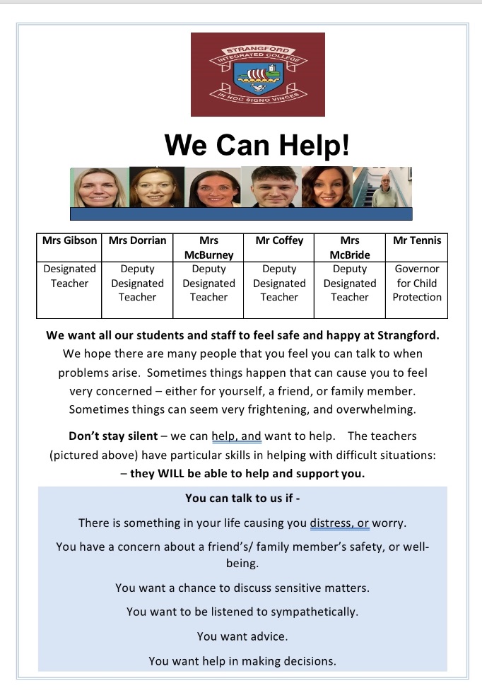All staff at Strangford Integrated College seek to connect with our students and form positive relationships therefore every member of staff contributes to our high level of pastoral care. For this reason our students feel happy and secure as part of our College community.